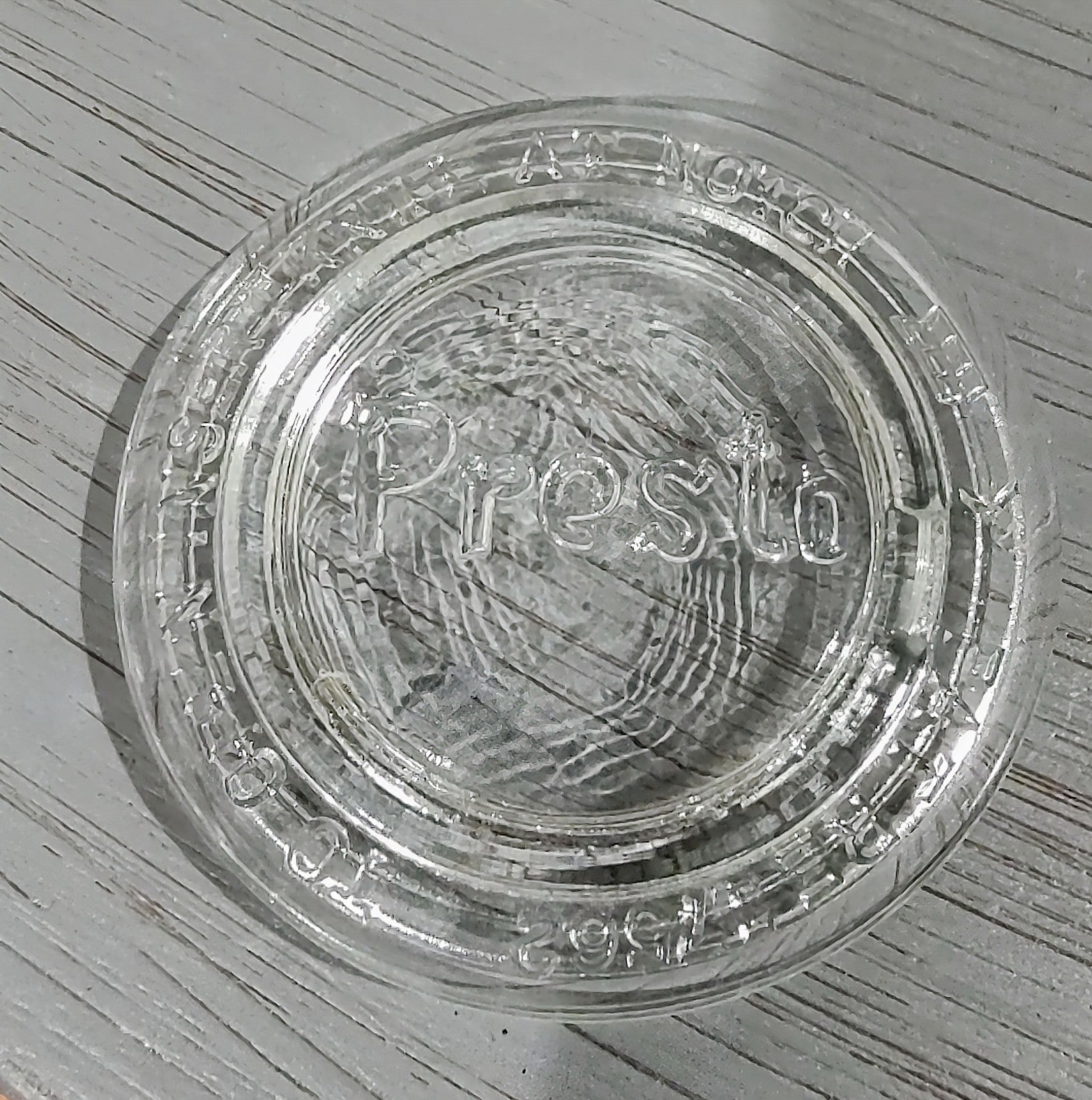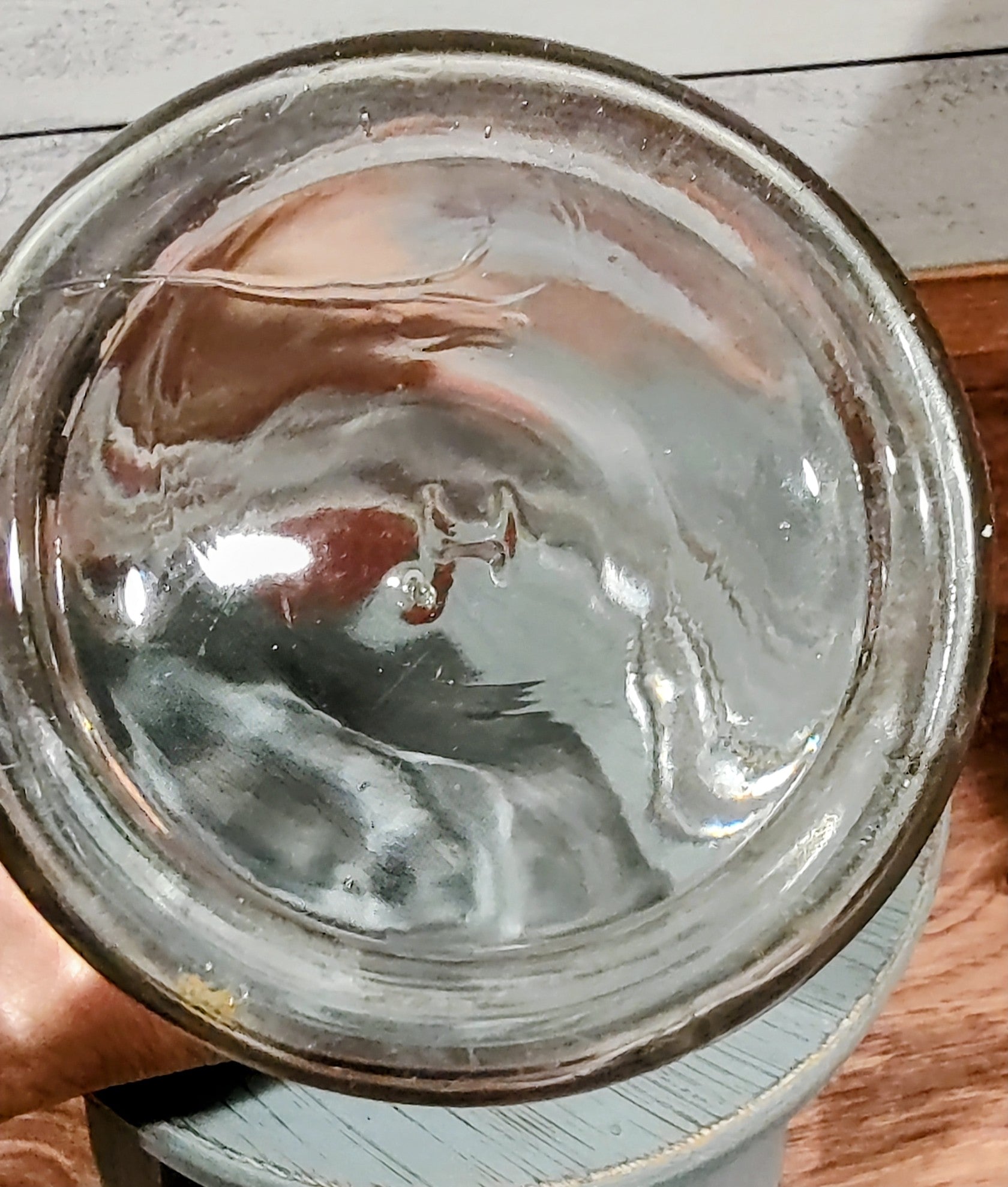 This jar is full of bubbles from the jar making process. It comes with a Presto glass cap.