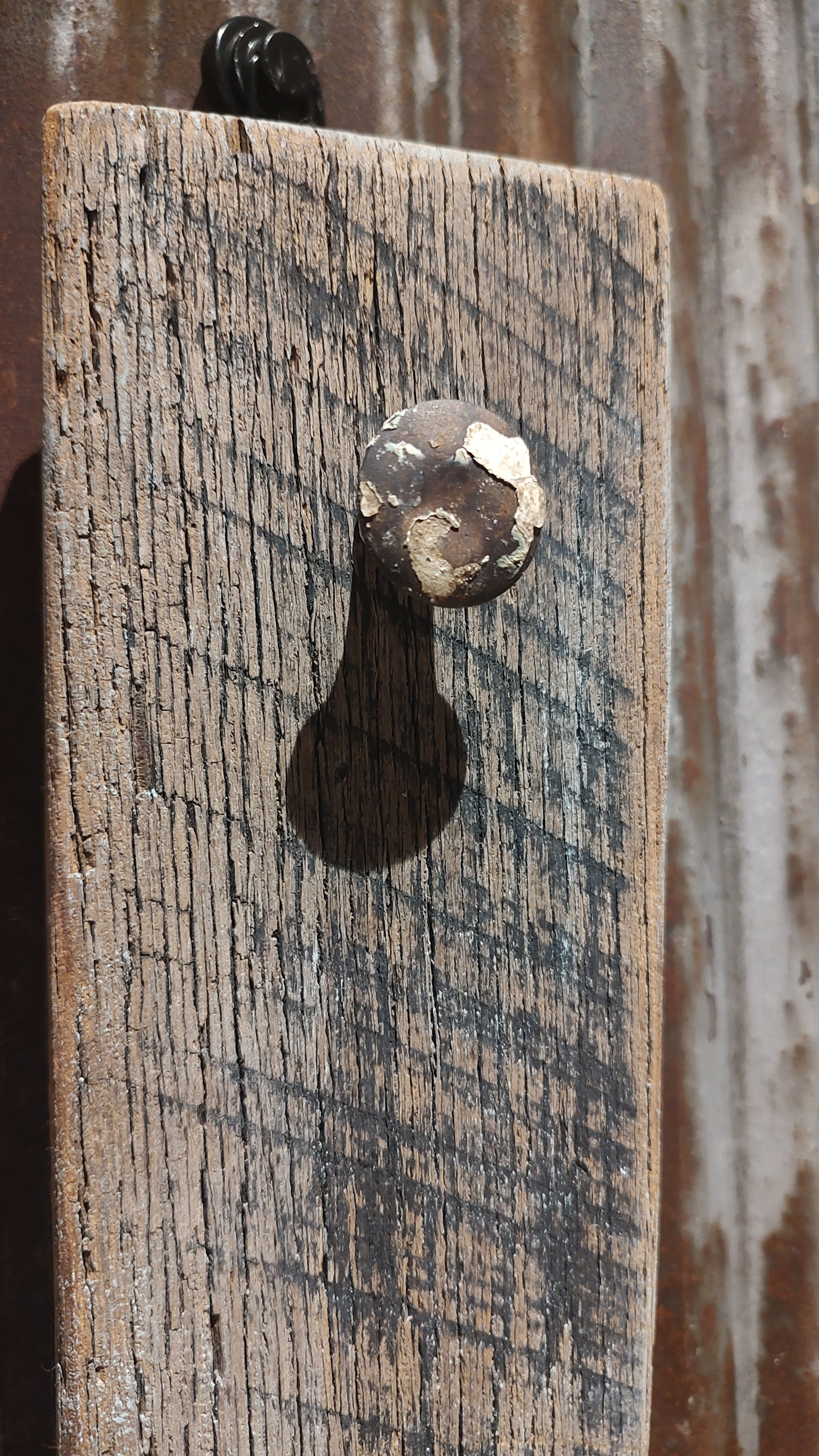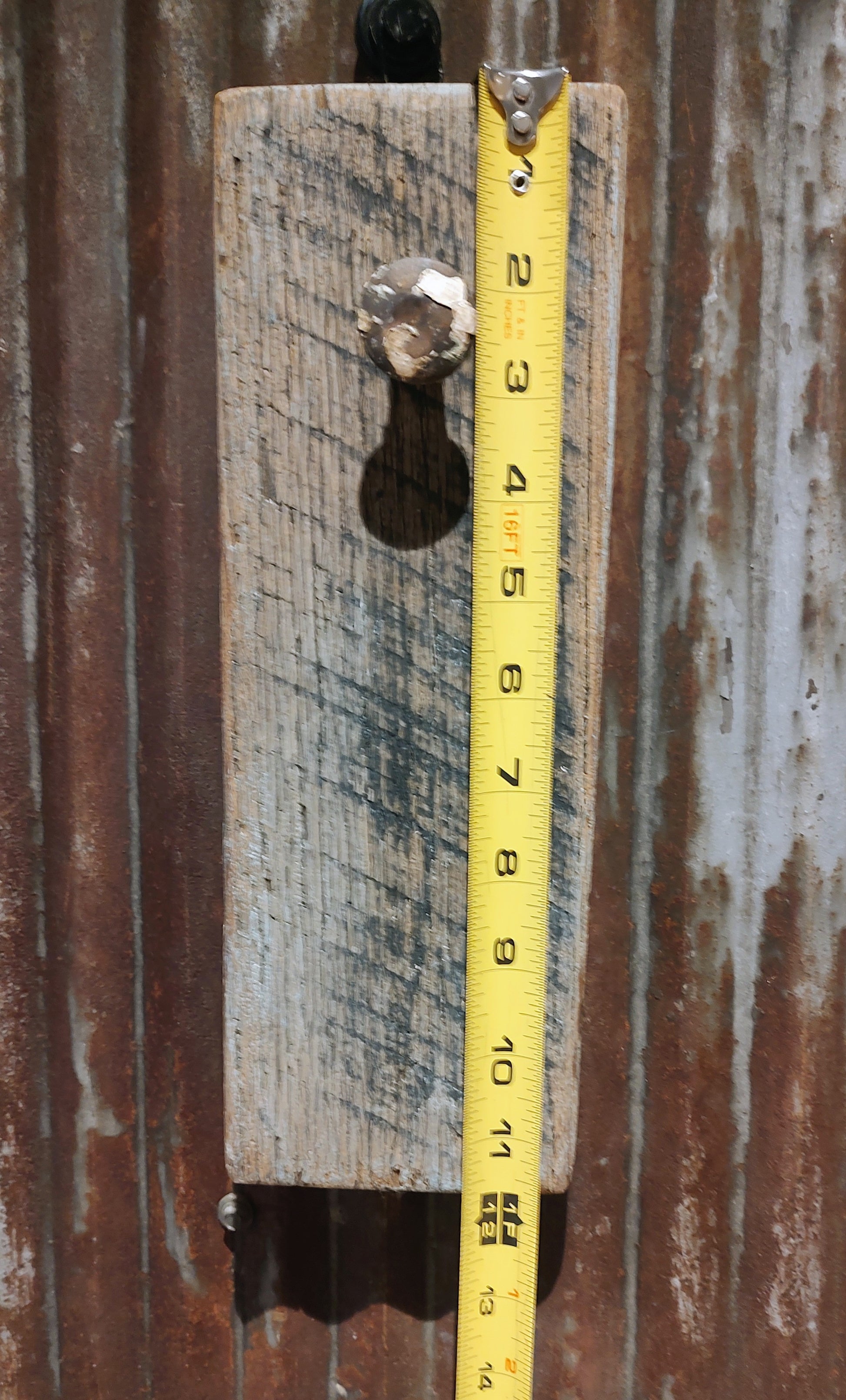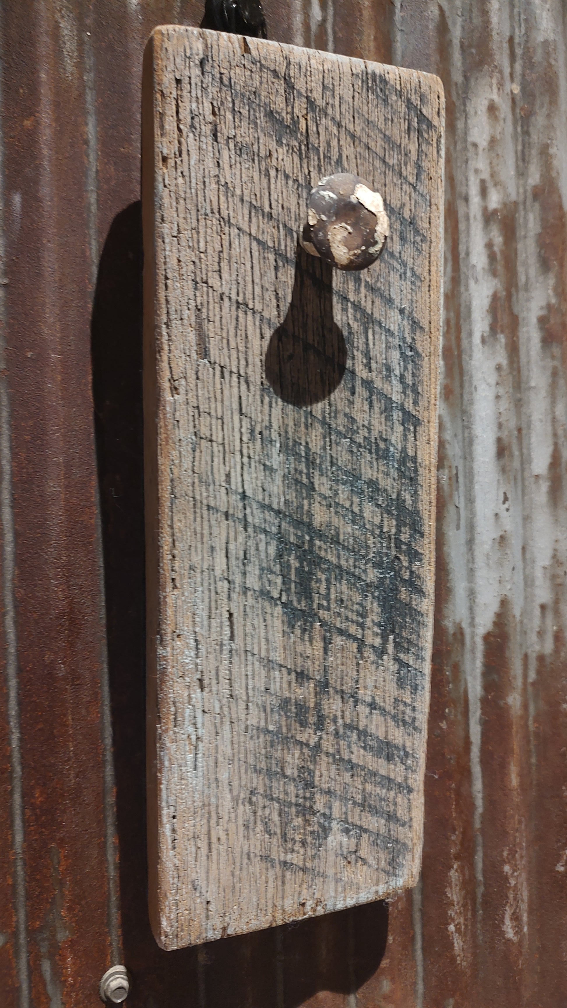 Waste not project using a repurposed fence board and an old drawer pull to create a mini lantern holder. The natural colored tile mosaic style votive holder hangs on the knob.
