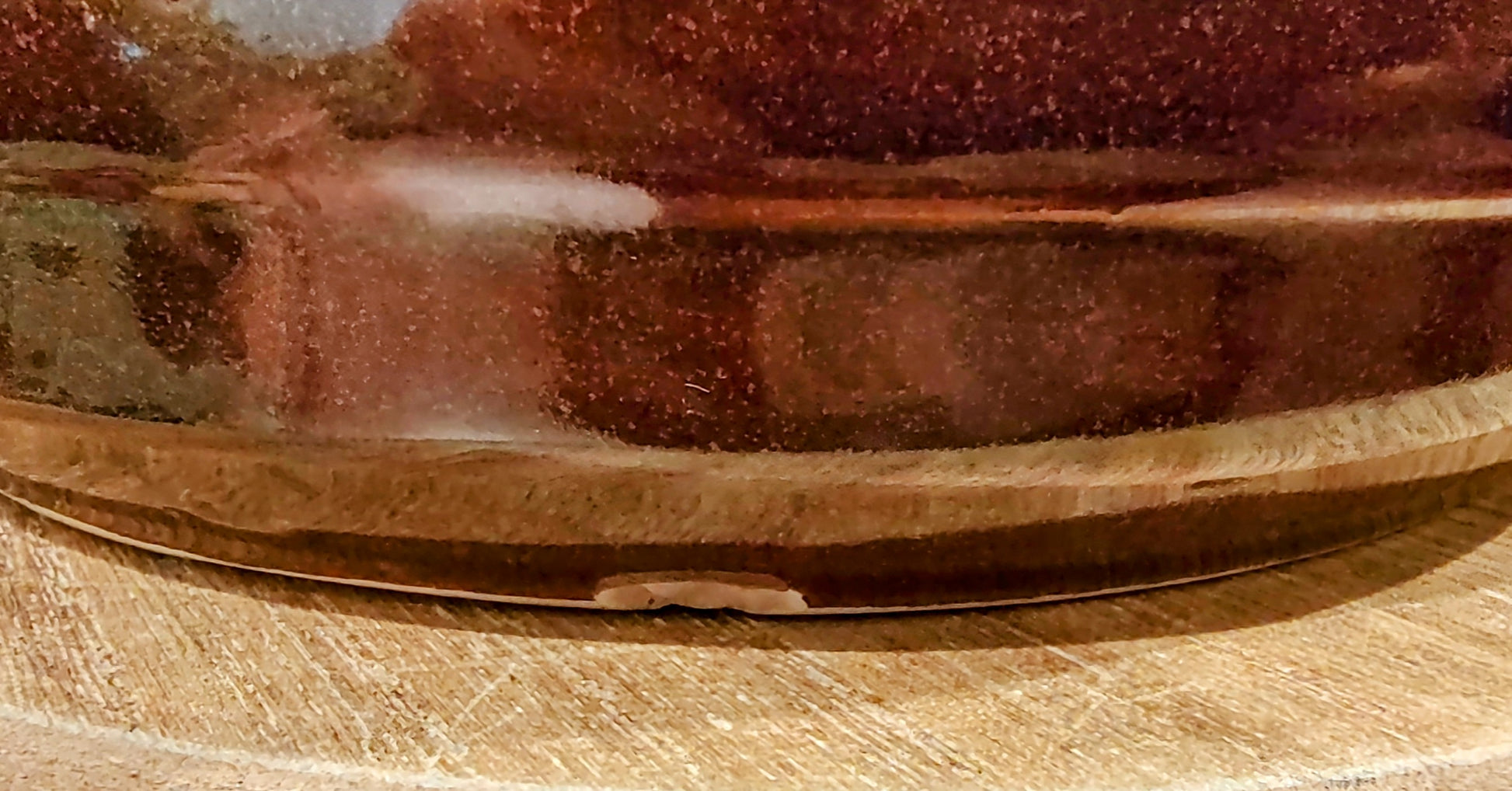The pot is approximately 4 1/2"tall with a 5 1/2" diameter at the opening (it's pot bellied so it's wider around the middle). There is a small chip on the bottom edge (please see pictures).