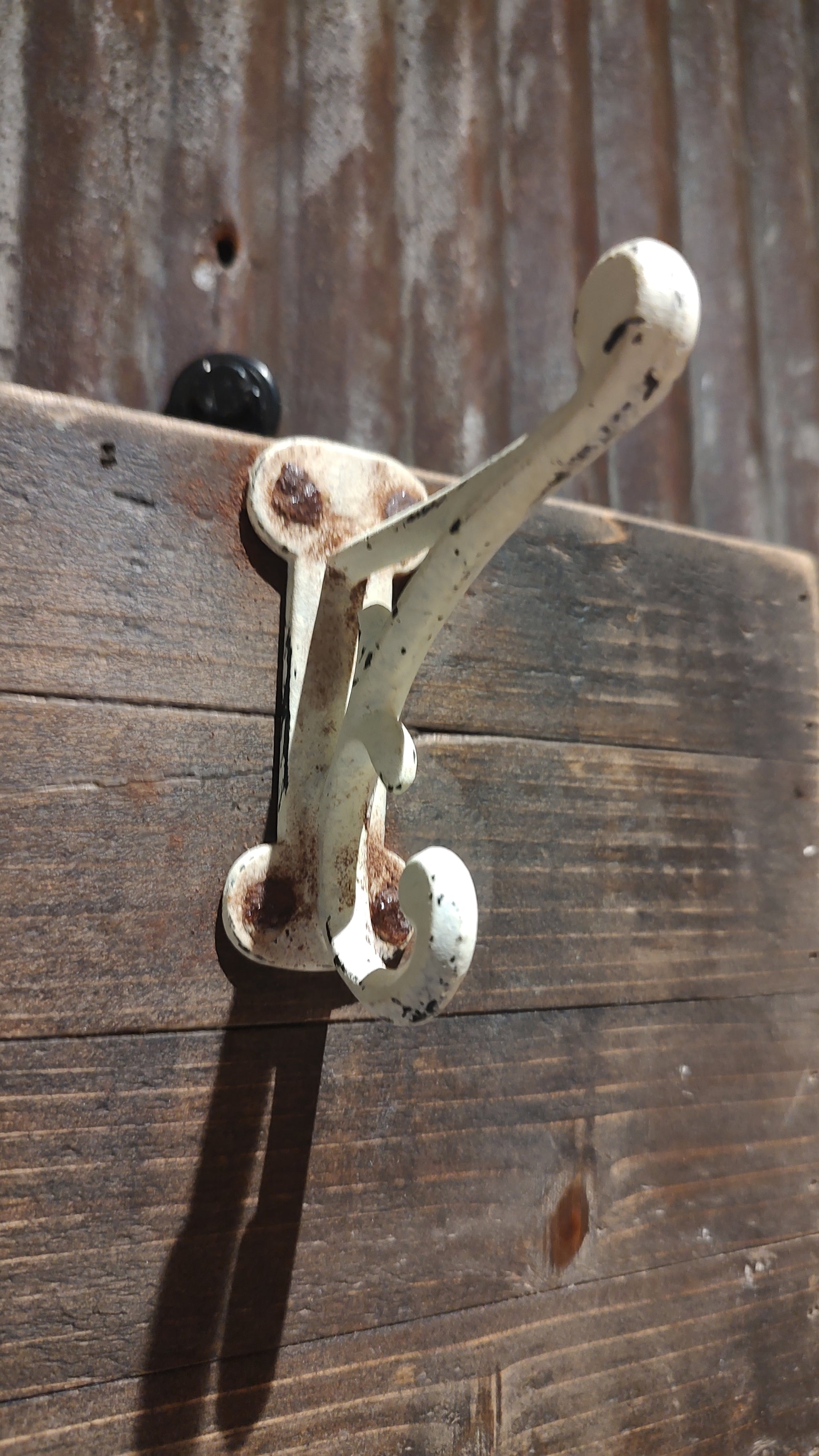 DIYed wood Sign repurposed using a coat hook to hang this yellow hand painted votive holder.