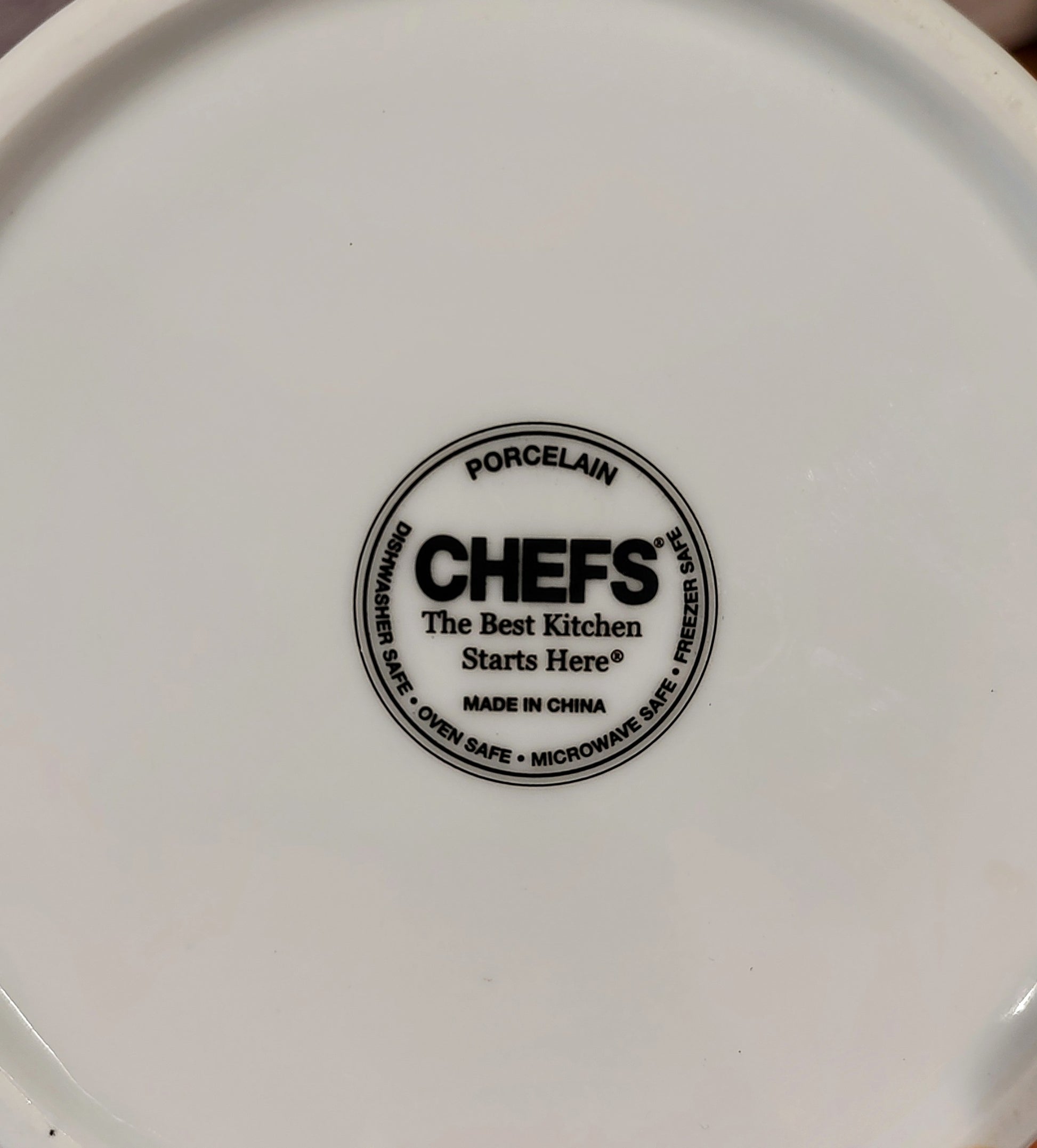 Chef's brand heavy porcelain basket. Oven, dishwasher and freezer proof, research shows it as a flatware caddy (doesn't have the flatware organizing insert).
