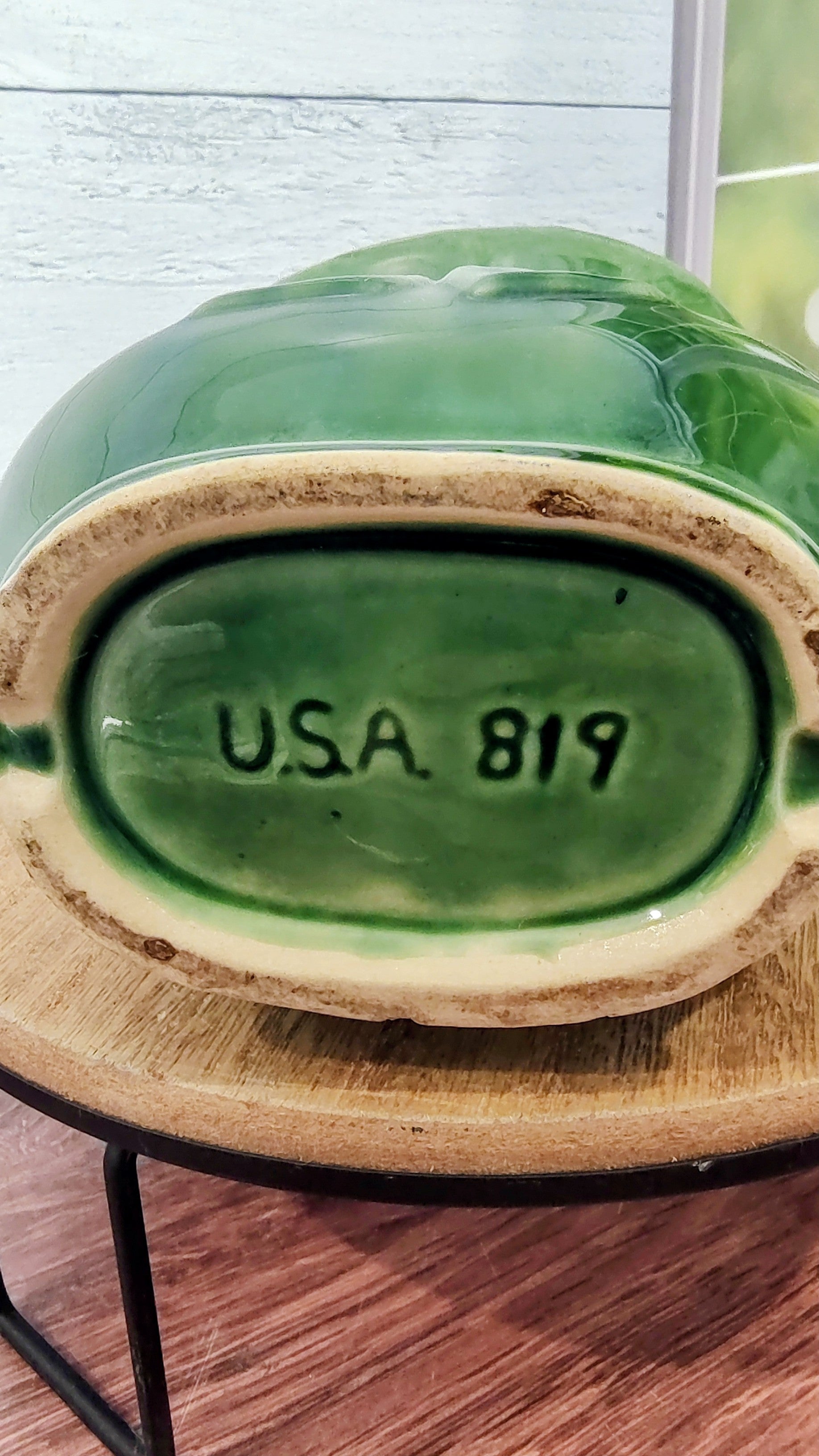 This is such a beautiful piece. It's vintage Shawnee Pottery in the green color. The bottom is marked with "USA 819".