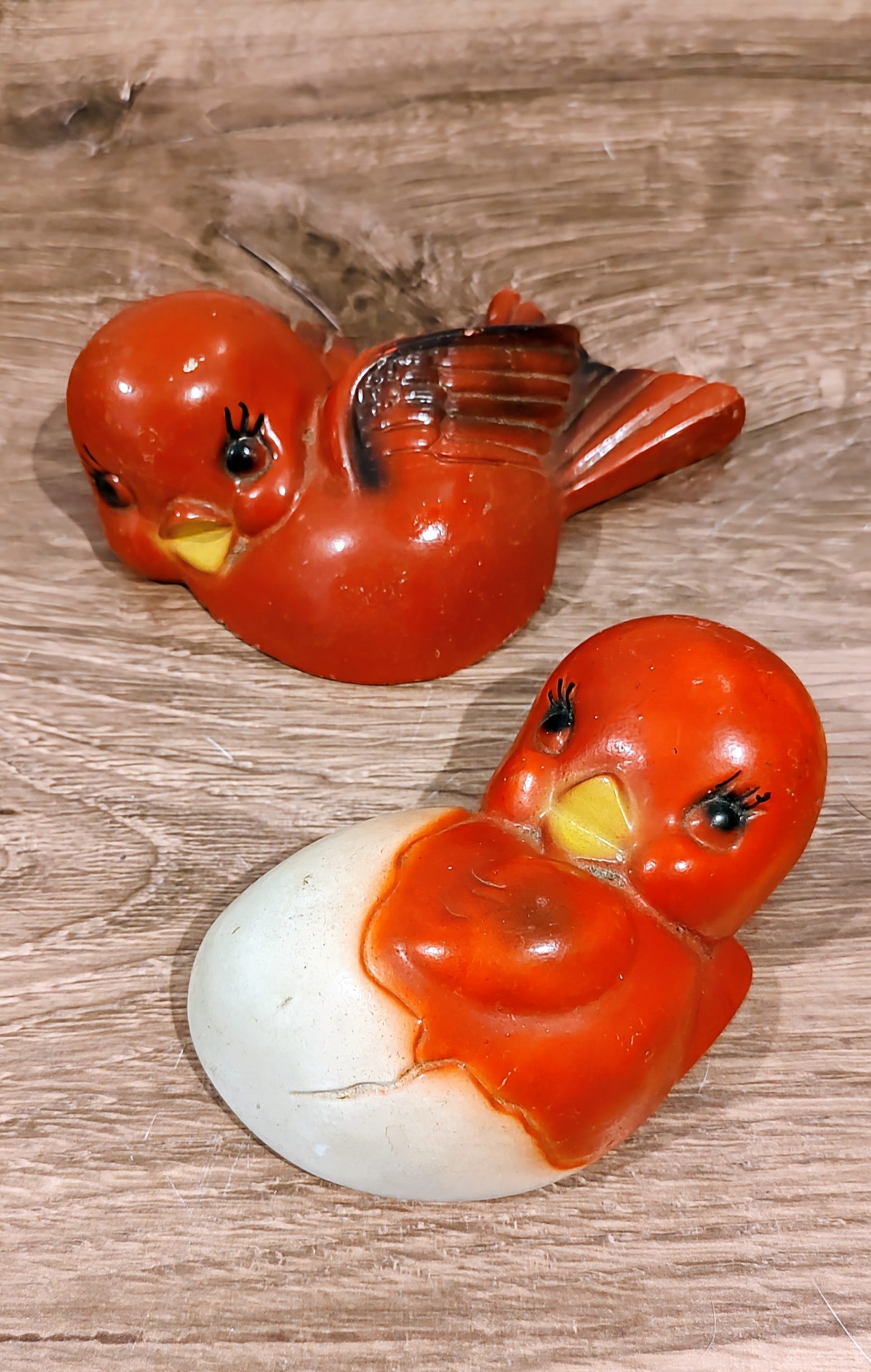 These vintage adorable kitschy chalkware birds were hand painted. They are the perfect addition to a fun, light hearted decor. Each is made with the hanger right into the back of the bird.