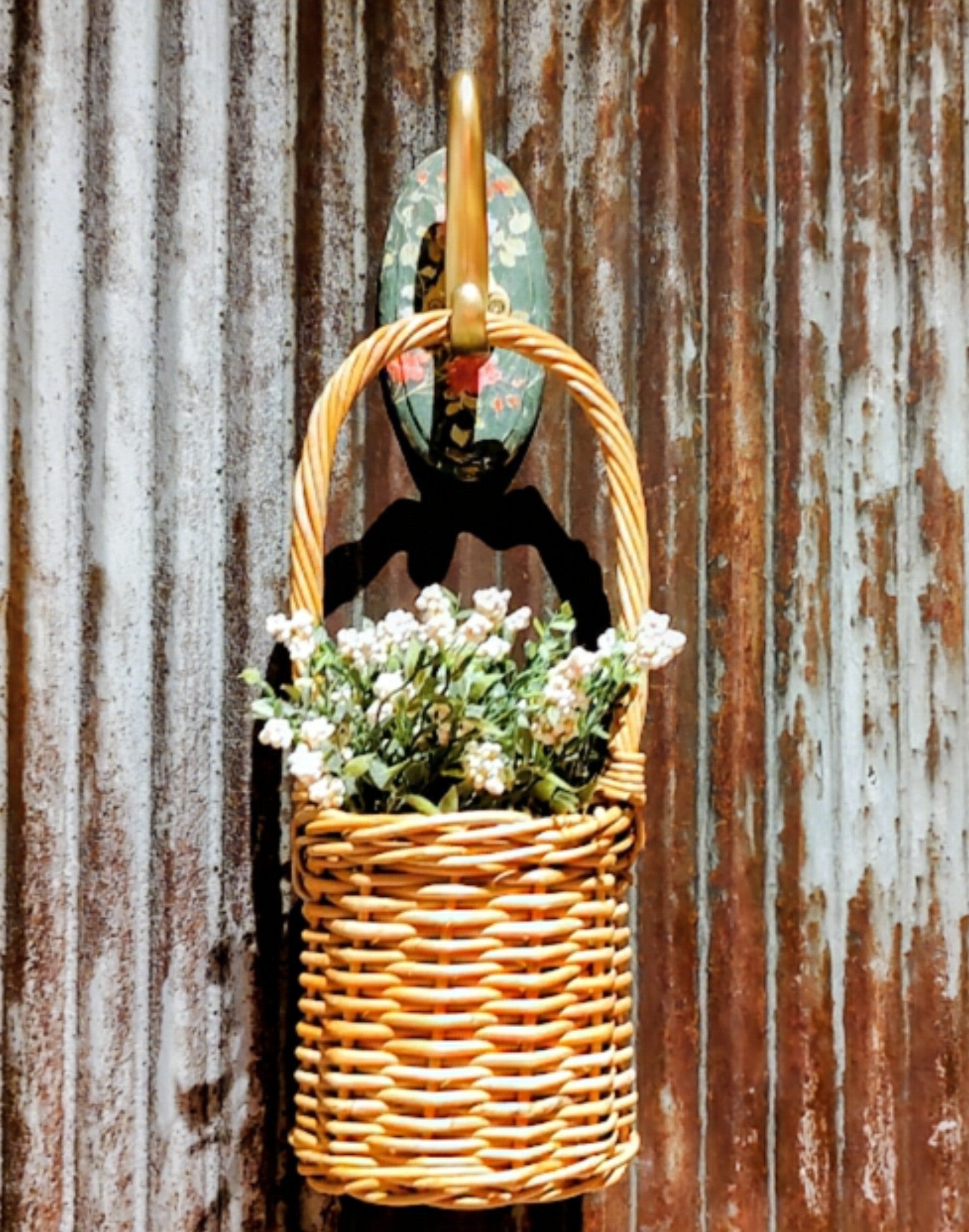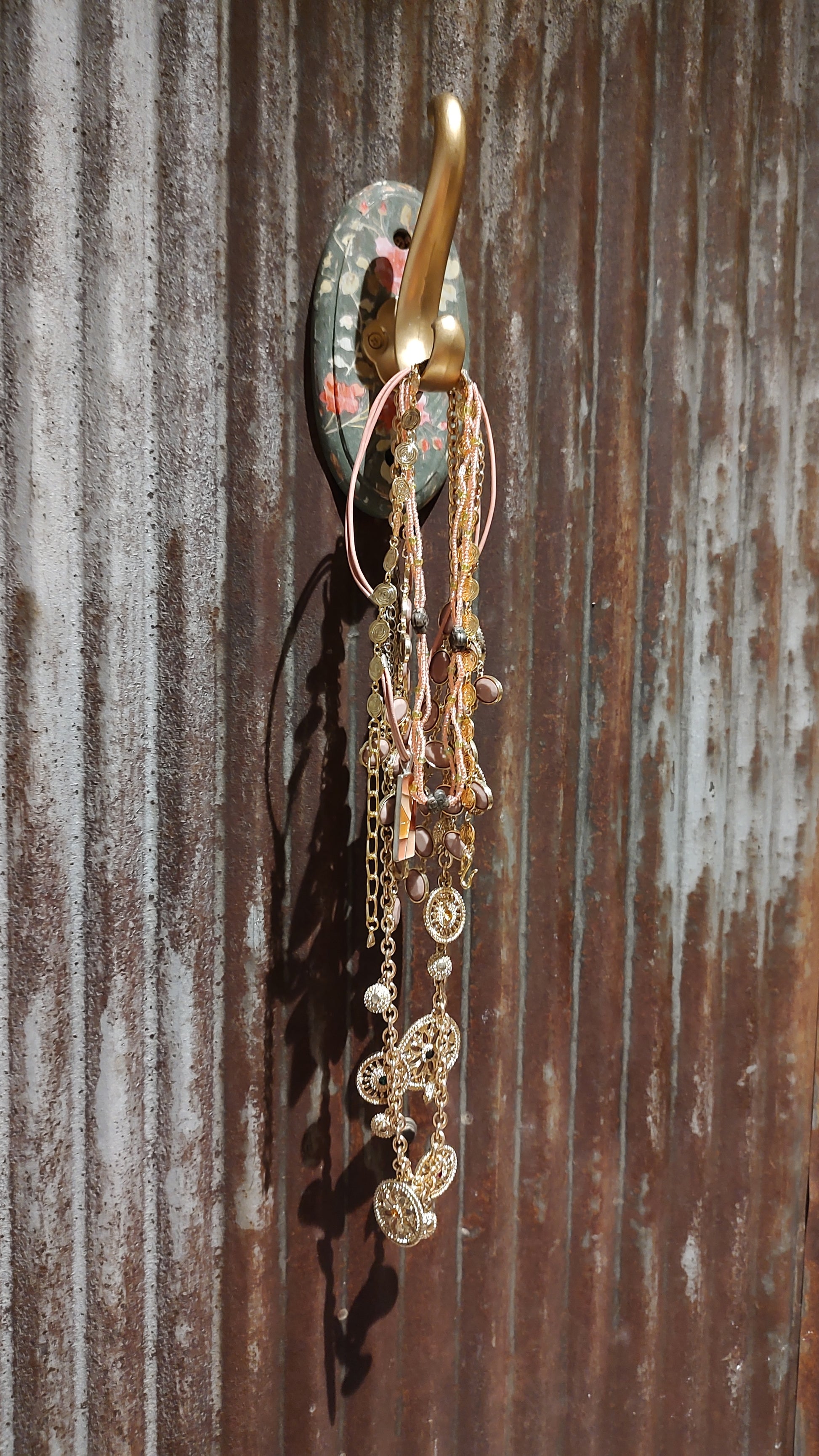 Painted and upcycled during our YouTube video, this floral and Gold wall hook can be added to your wall as decor on its own. However it adds a great flair on which you can hang jewelry, purses, coats and more.