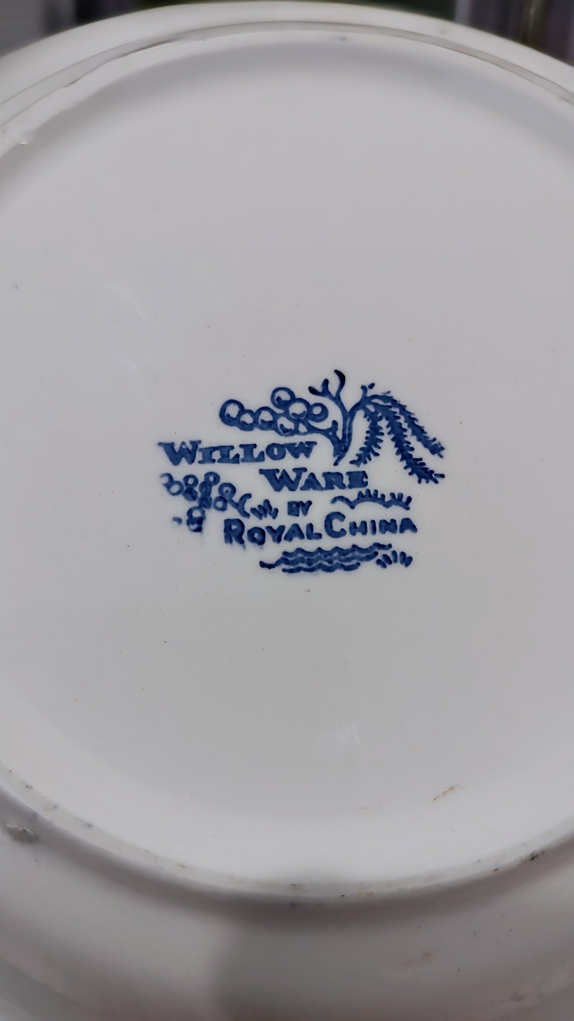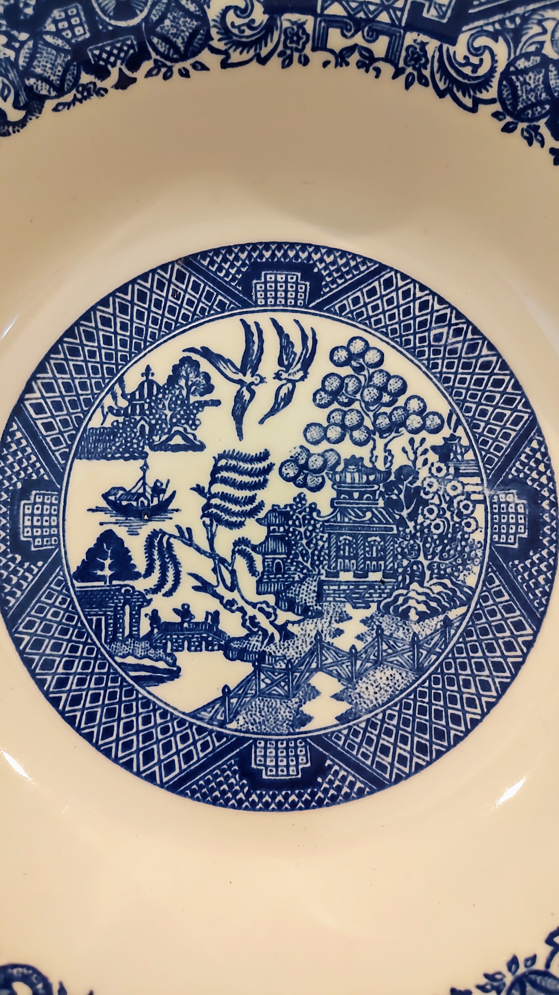Beautiful blue and white shallow bowl. This Willow Ware is approximately 8 1/4" wide and 1 1/2" high.