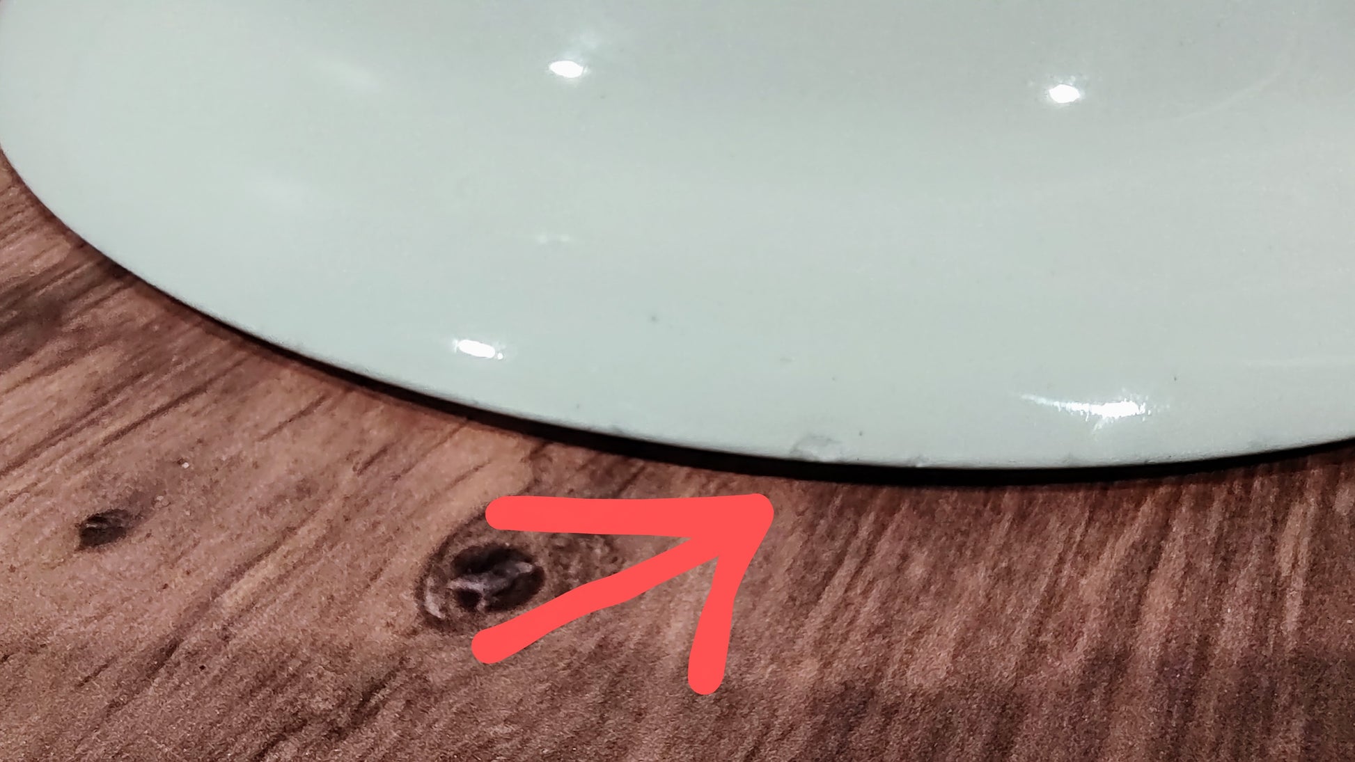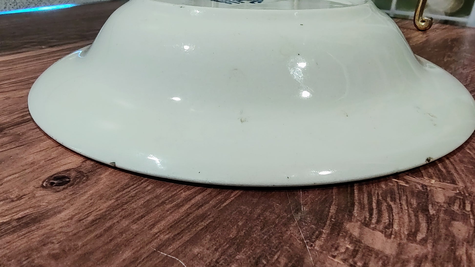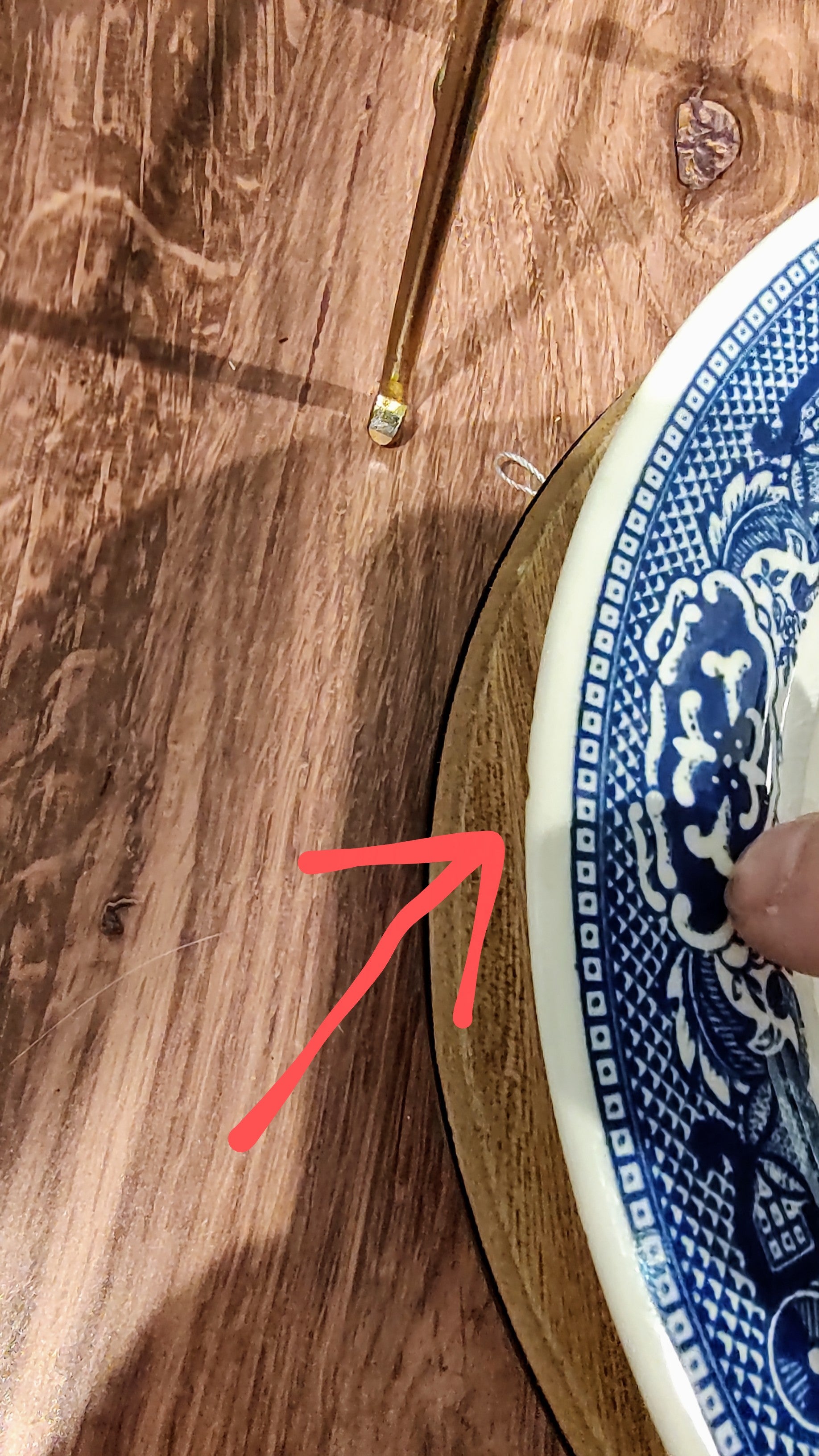 There are small chips on the under side of the rim. Please see the pictures. Two are invisible from the front with one barely visible. Still perfect for blue and white displays!