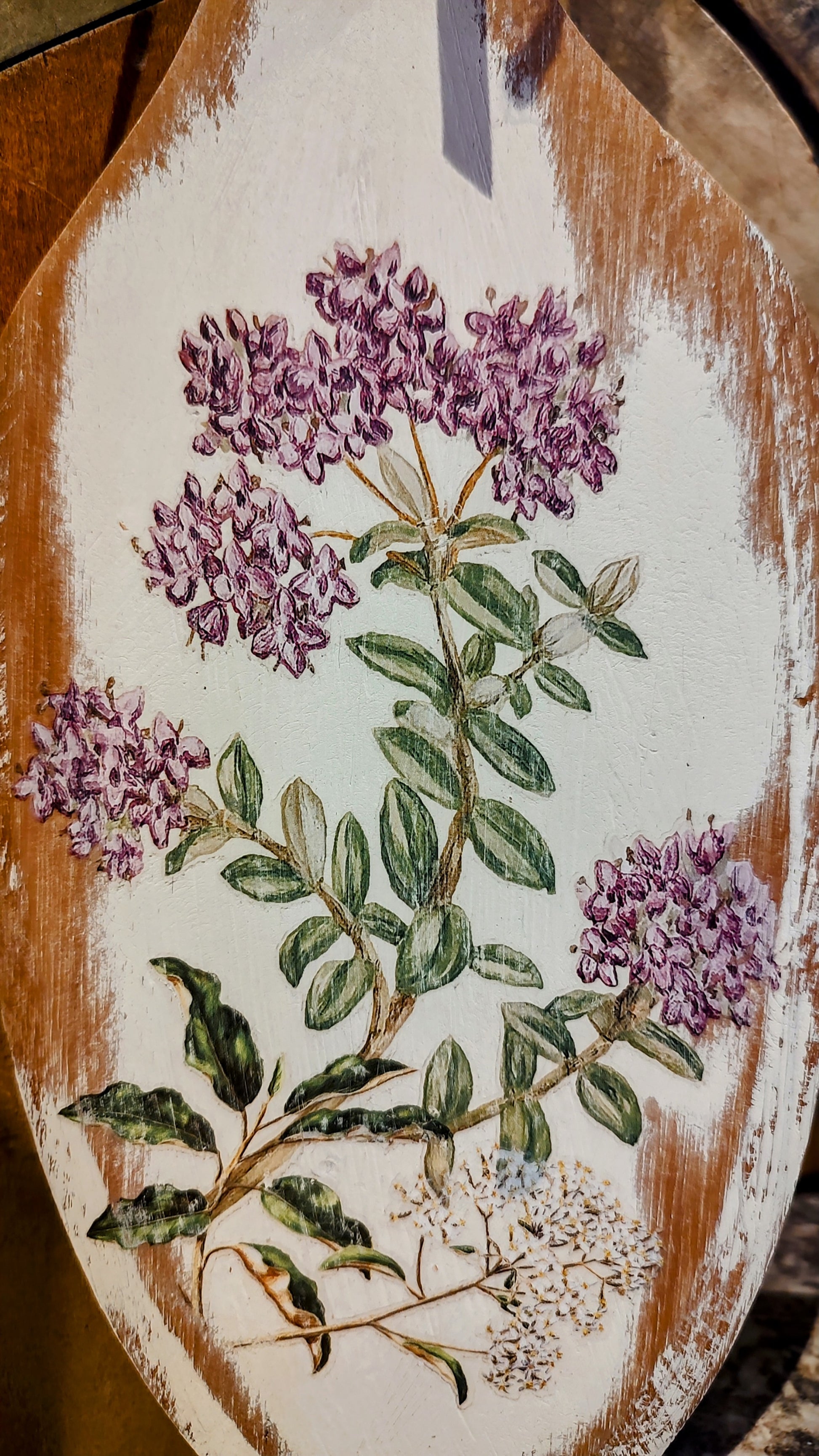 This adorable upcycled wood Spatula is approximately 15 1/2" long. It has been painted on one side with Debi's Design Diary DIY paint in the color White Swan and has a flower transfer from the IOD Summer release book, Sarah Featon Botanicals.